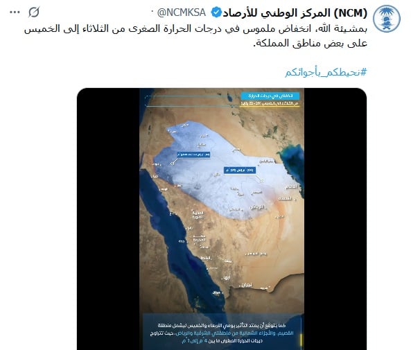 الوطني للأرصاد يحذر: موجة برد شديدة تتعمق في المملكة مع درجات تحت الصفر من الثلاثاء حتى الخميس