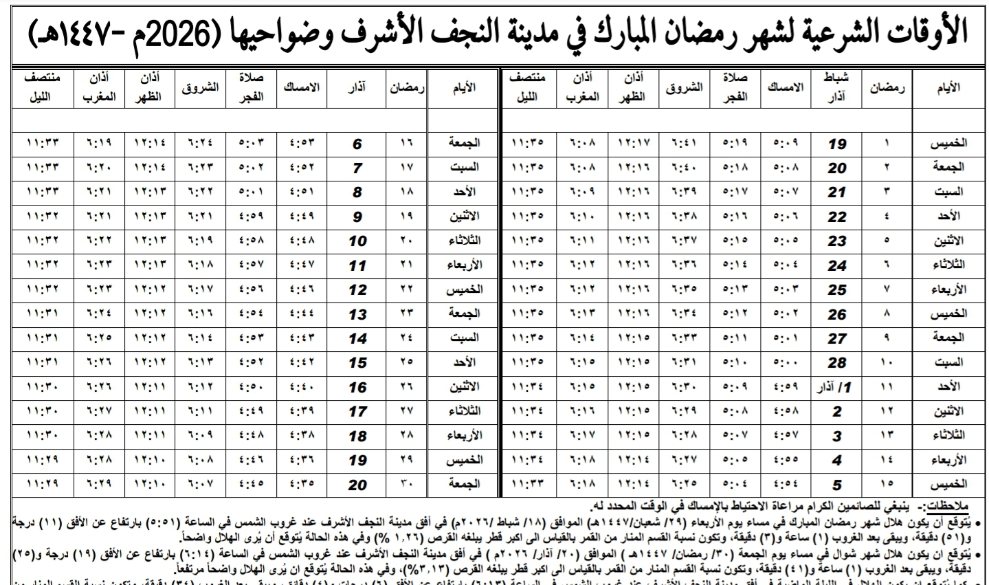 موعد رمضان 2026 في العراق والإمساكية الرسمية بأعلى جودة لمتابعة الصيام بدقة